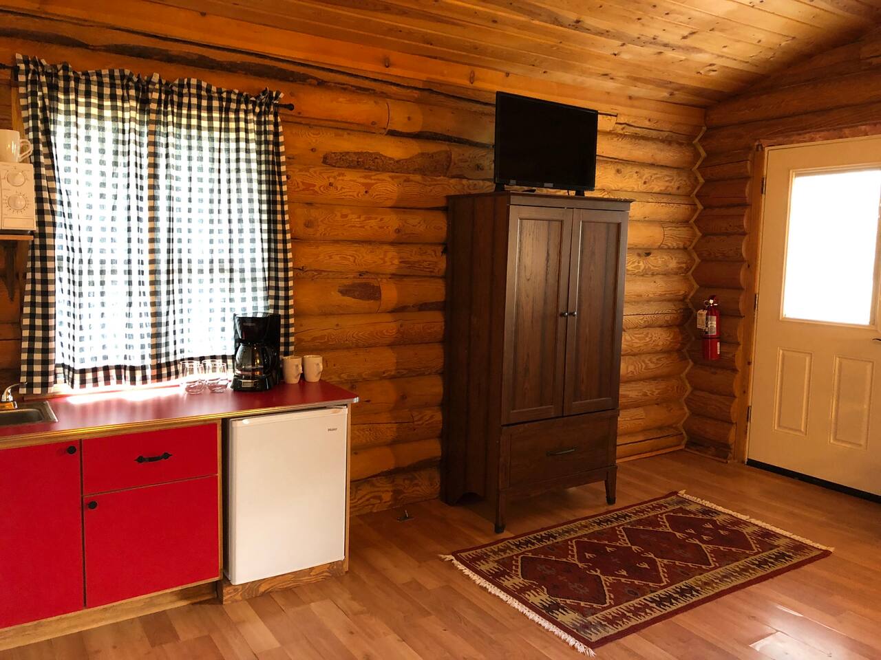 This cozy one room log cabin is approximately 350 sq feet. You have your own porch for relaxing. The cabins are walking distance to many restaurants in Bellevue. Check out my online guide by clicking on my profile picture. We are also steps away from the Wood River Trail that goes over 17 miles from south of Bellevue to north of Ketchum. It's awesome for walking, biking and is groomed for nordic skiing in the winter. We have easy self check in with a code that you will receive before your stay. We have 5 stars for our check in experience. 1 QUEEN BED 1 SOFA BED -Zinus foam mattress are highly rated on Amazon -Quality sheets and linens -Bedside reading lights FULL BATHROOM -Toiletries, shampoo, conditioner, body wash and soap. -Shower tub combo -Good water pressure -Bathroom heater -Portable fan is under bathroom sink -Towels KITCHENETTE -Microwave -Mini-fridge with SMALL freezer section -Full size drip coffee maker with coffee -creamer, hot chocolate, sugar and sweetener -Coffee mugs, small glasses, small plates, silverware, cereal bowls -Dishwasher soap, sponge and dish rack -Paper towels -Western and vintage decor -Two arm chairs -Armoire with hangers for clothes storage -Luggage rack -Easy parking close to cabin -Strong Wifi -Smart TV some live channels and log in to your accounts _AC window unit is installed from Memorial Day to Labor Day -Heat is provided by a wall heater and baseboard heater. At night turn down wall heater with blower and leave on baseboard heater for quieter sleeping. The cabin stays toasty in the winter but floors can still be chilly, bring slippers. No guest laundry available but there is a laundromat very close by in Bellevue. Trash cans are available next to Cabin 3 in snowy weather and in warmer temps are located in the parking area by Cabin 4. In winter snow removal is provided at the cabins. The parking area is plowed and paths are shoveled after 3 inches of snow. In town the roads are consistently plowed. Our roads are generally easy to get around in the snowy months because we don't have any hilly or mountain roads. They are mostly flat. I do recommend checking road conditions from Idaho 511 to check conditions getting to and from our area. It is best to be prepared for winter travel with a shovel, snow scrapers, blanket, flashlight and extra food and water for emergencies.
