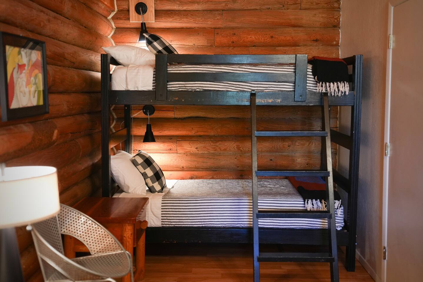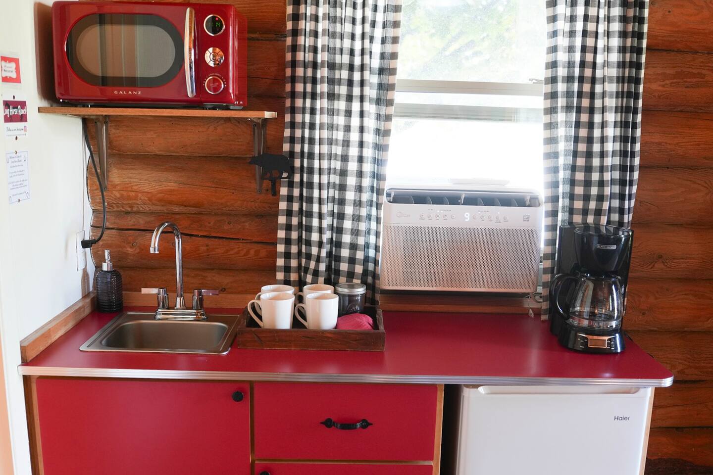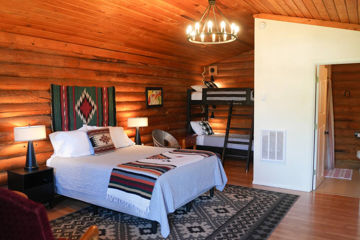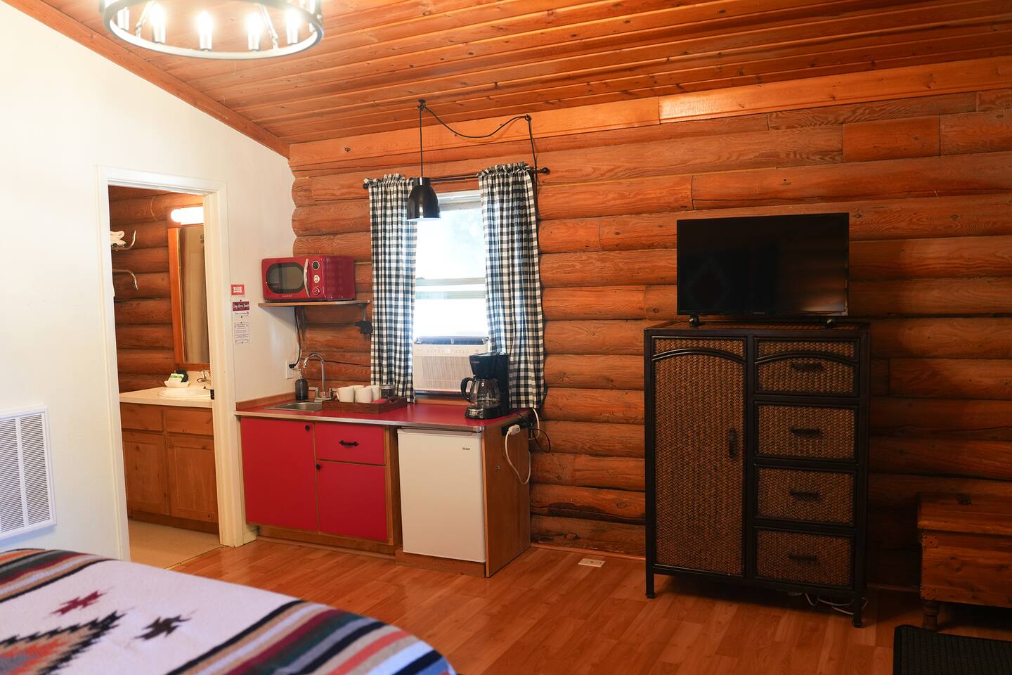This cozy one room log cabin is approximately 350 sq feet. You have your own porch for relaxing. The cabins are walking distance to many restaurants in Bellevue. Check out my online guide by clicking on my profile picture. We are also steps away from the Wood River Trail that goes over 17 miles from south of Bellevue to north of Ketchum. It's awesome for walking, biking and is groomed for nordic skiing in the winter. We have easy self check in with a code that you will receive before your stay. We have 5 stars for our check in experience. 1 QUEEN BED 1 BUNK BED -Queen Zinus foam mattress, highly rated Amazon -Quality sheets and linens -Bedside reading lights FULL BATHROOM -Toiletries provided, shampoo, conditioner, body wash and soap. -Shower tub combo -Good water pressure -Bathroom heater -Portable fan is under bathroom sink KITCHENETTE -Microwave -Mini-fridge with SMALL freezer section -Full size drip coffee maker with coffee -creamer, hot chocolate, sugar and sweetener -Coffee mugs, small glasses, small plates, silverware, cereal bowls -Dishwasher soap, sponge and dish rack -Paper towels -Western and vintage decor -Two arm chairs -Armoire with hangers for clothes storage -Luggage rack -Easy parking close to cabin -Strong Wifi -Smart TV some live channels and log in to your accounts _AC window unit is installed from Memorial Day to Labor Day -Heat is provided by a wall heater. The cabin stays toasty in the winter but floors can still be chilly, bring slippers. No guest laundry available but there is a laundromat very close by in Bellevue. Trash cans are available next to Cabin 3 in snowy weather and in warmer temps are located in the parking area by Cabin 4. In winter snow removal is provided at the cabins. The parking area is plowed and paths are shoveled after 3 inches of snow. In town the roads are consistently plowed. Our roads are generally easy to get around in the snowy months because we don't have any hilly or mountain roads. They are mostly flat. I do recommend checking road conditions from Idaho 511 to check conditions getting to and from our area. It is best to be prepared for winter travel with a shovel, snow scrapers, blanket, flashlight and extra food and water for emergencies.